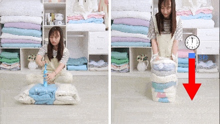 一按一压清空半个行李箱
