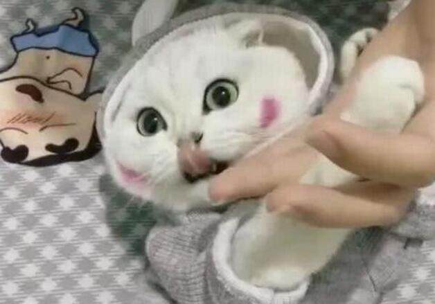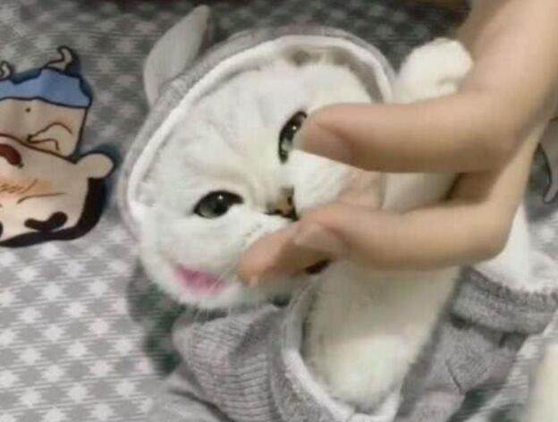 不过偶然的一次机会,铲屎官在给折耳猫穿衣服,却被猫咪突然袭击舔了一下手指头,结果猫咪的表情却是亮了,我们可以看到看到猫咪还非常回味的伸出了小舌头!