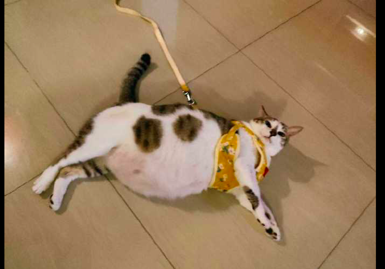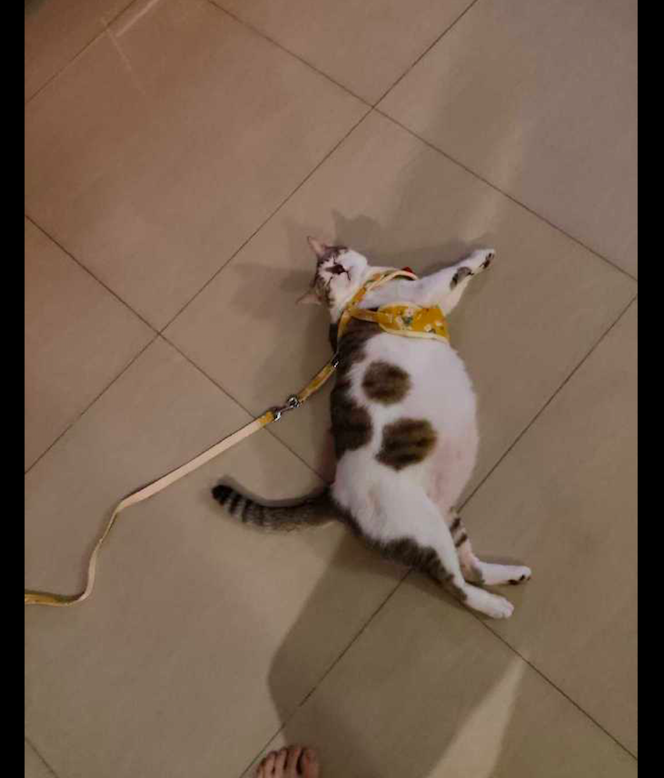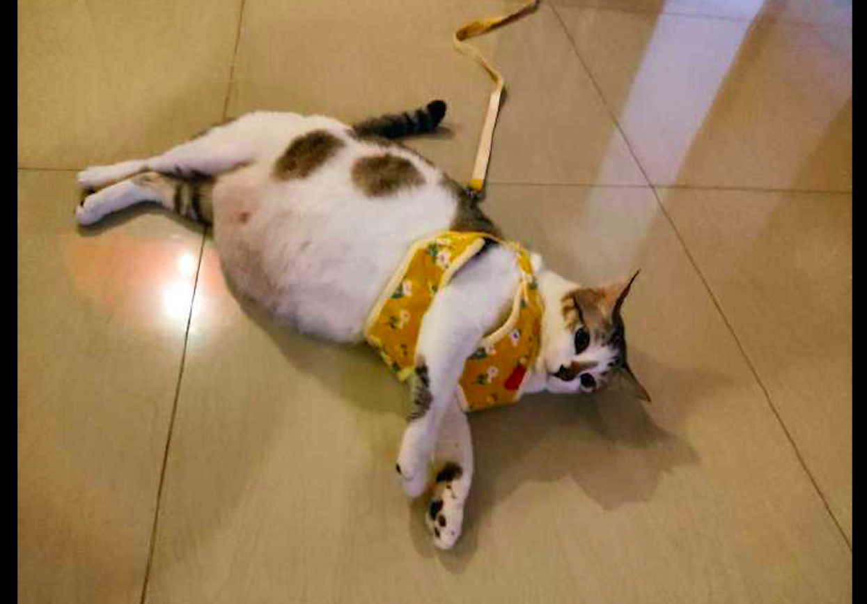 就有这么一位网友,家里养了只猫咪。全家都特别的疼爱这个小可爱,什么好吃的好喝的都给它,所以猫咪到家了几个月的时间,就吃成了个大胖了!最近网友想要带猫咪出去玩,为了保险起见,于是就买了个牵引绳。还特意问了商家,猫咪该买什么码的,而商家推荐买XL号的。