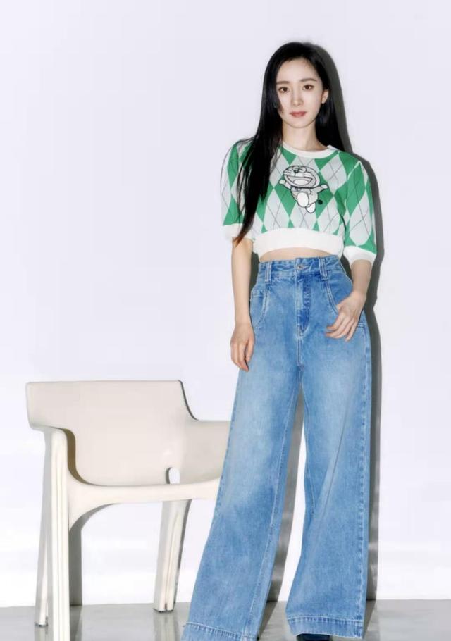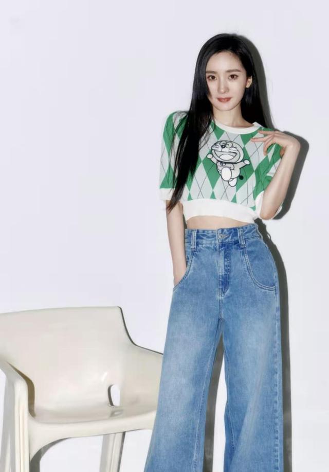 “针织短袖+牛仔裤”是一种非常日常的穿搭方式,在春夏季节,这样穿的人有很多,但跟大家不同的是,杨幂并没有规规矩矩地穿“针织短袖+牛仔裤”,而是选择“小一号”针织短袖,故意露出纤细的小蛮腰,并且在小蛮腰诱人的魅力下,“针织短袖+牛仔裤”这一穿搭方式竟变得格外不同。