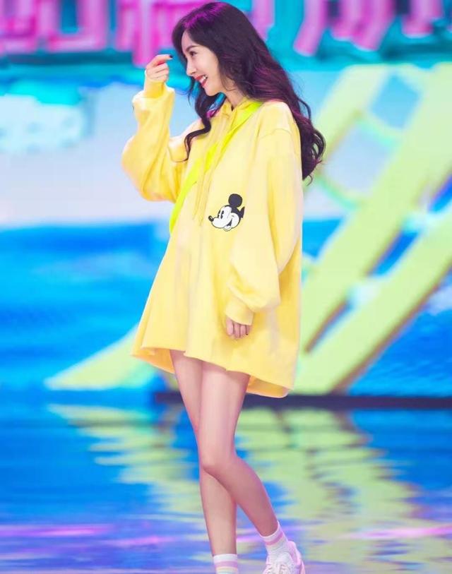 看到杨幂身上这件黄色卫衣,大家有没有感受到浓浓的春天气息,不得不说,黄色卫衣太适合在春天穿了。只是,黄色卫衣对于肤色的要求,比较高,只要肤色白的人才能把黄色卫衣穿得亮眼动人。另外,黄色卫衣在搭配方式,也存在难度,杨幂这种把黄色卫衣当成裙子穿穿法,是最简单的,穿搭小白也能秒上手。