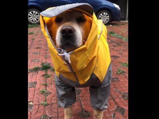 特别是下雨天的时候,这件衣服最实用,一看就知道是防水的,之后带金毛出门散步再也不用看天气了,也不用怕其它车辆溅起来的水会弄脏金毛了,回家只要把金毛的衣服一脱,然后给金毛的爪子一洗,就又是一条好汉!不知道各位铲屎官们也有给自己的宠物们准备这种贴心的衣服吗?