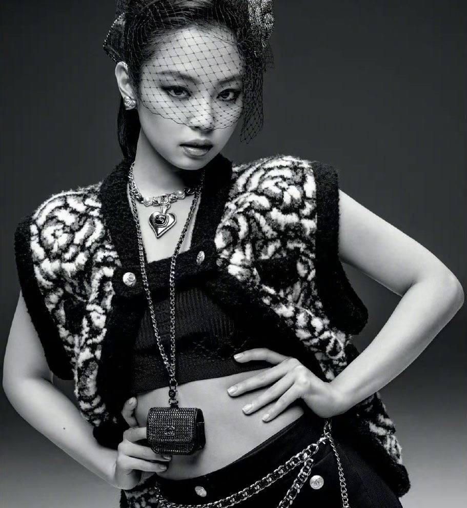 除此之外,Jennie还通过粉色运动套装、香奈儿小夹克、黑色高腰针织上衣等不同的单品,诠释了混搭的魅力。