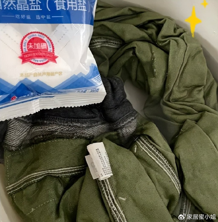在浸泡的过程中加入白醋和食用盐,能将里面的细菌杀死,还能让衣服变得更柔软,穿在身上也舒服。