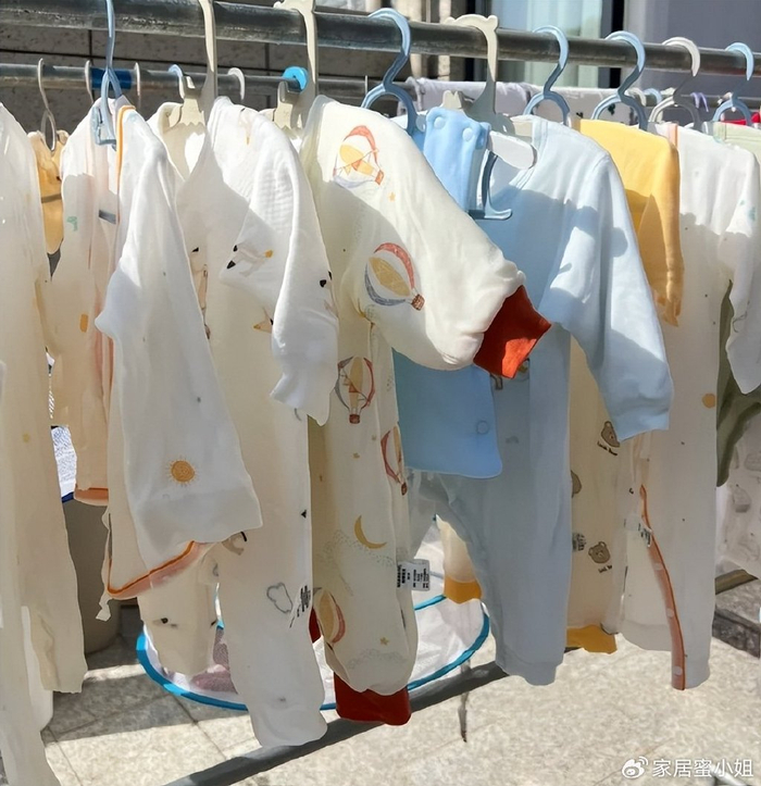 新衣服清洁完毕后,放在阳光下面自然晒干,通过紫外线能起到杀菌的作用。