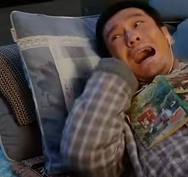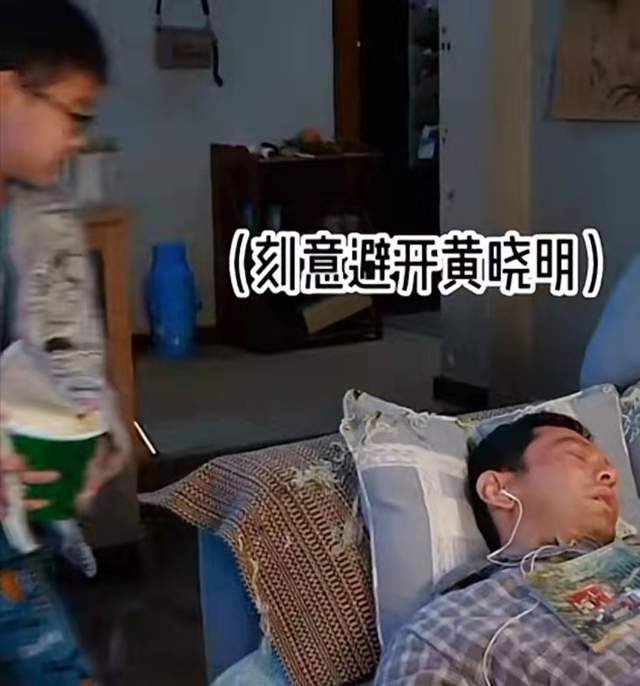 在片场,黄晓明穿着睡衣躺在沙发上,胡子拉碴的憔悴模样,戴着耳机在演睡觉,而小演员害怕伤害到前辈,只敢往沙发边倒,黄晓明发现后也只是好脾气大笑,看出孩子顾虑,笑着鼓励小演员大胆勇敢泼下去,泼得越准他越高兴。