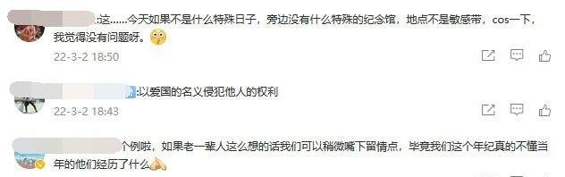 这不禁让人想到,之前在南京某公园,一名男子戴着头巾,露出黄辫子,身着日漫服装游玩,其衣服上还写着“初代东京卍会”等字样。结果,男子被路人团团围住,要求他脱下外套,到别处搞动漫。当时,许多网友都认为路人的做法或许有些过激,但他们的立场可以理解,因为“大屠杀”历史的创痛使得南京极为敏感,南京公众对此也极为敏感。