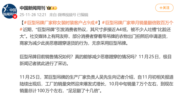 “巨型吊牌”又展示了消费者与商家之间的千层博弈。