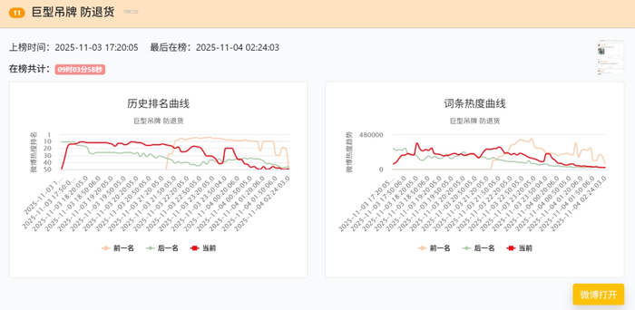 而如果你稍微关注了这些天的社交媒体,会发现这场恶意退款者与店家的战争,已经在各个角落打响。三天两头你就能够在热搜榜上看到全新的进展,你方唱罢我登场。今天的热搜是“巨型吊牌仅退款”,明天的热搜是“巨型吊牌被破解了”,全程毫无尿点,双方都有新活。
