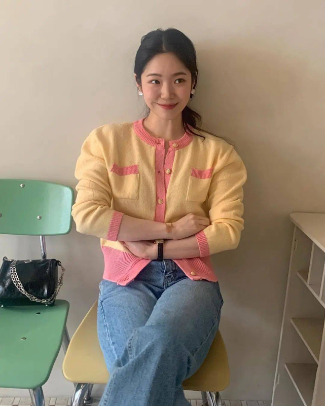 针织开衫也是早春出镜频率非常高的单品,在整个设计上,它的面料更为柔软,所呈现出来的文艺气质也更突出,往往会被用来与高腰裤组合,轻松就能够打造出很强的清新效果。