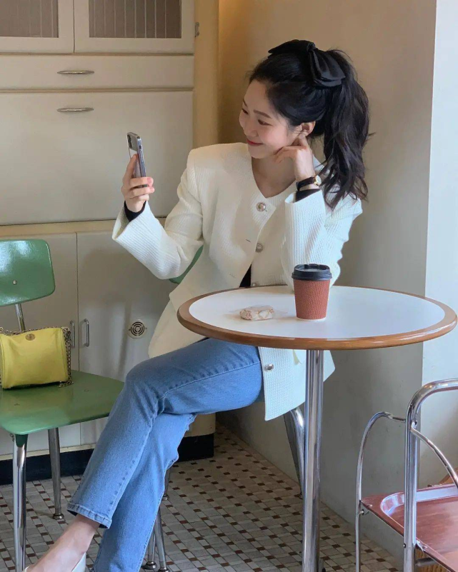 与此同时,短款设计与高腰裤的结合,不仅能够拉高腰线,同时还可以在视觉上打造出大长腿,让身材比例看上去更加出众,非常适合身材娇小的女生,如果再配上贝雷帽等饰品,分分钟就能变身文艺女青年。