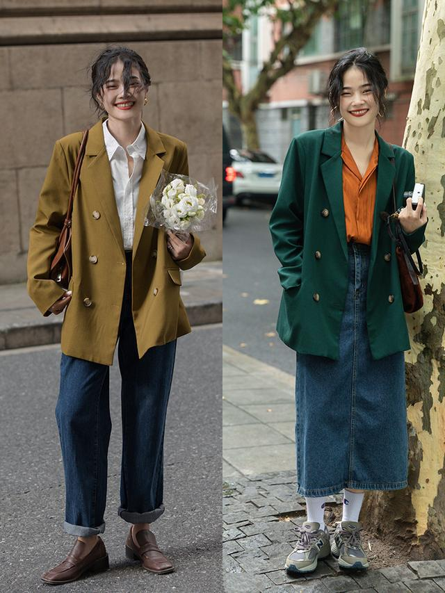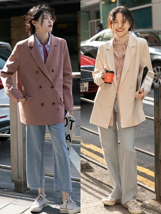 西装在早春也是非常地受欢迎,而且相比较于其他季节时的简约搭配,早春时节,西装更擅长与多款单品进行叠穿组合。