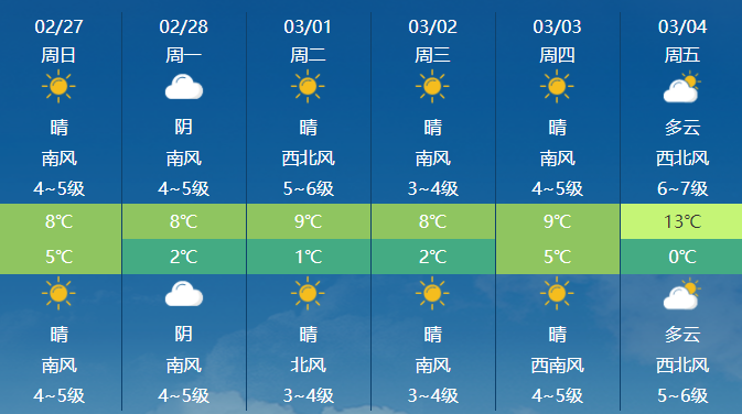 28日夜间到3月1日白天天气又转晴。