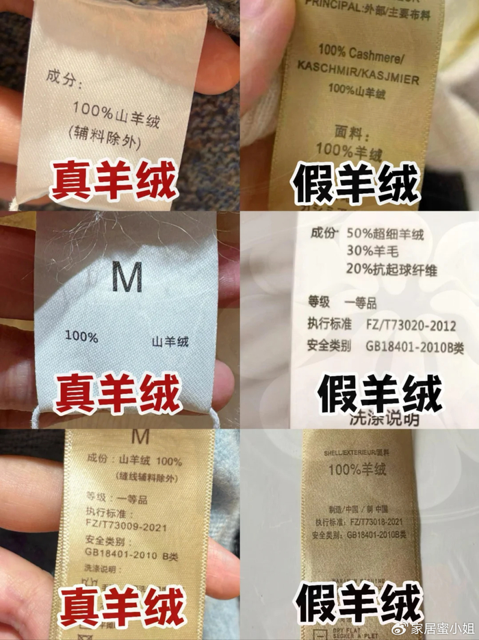 如果含绒量低于30%或者只写了羊绒质感、羊绒风格的,全都是假的,千万不要买。