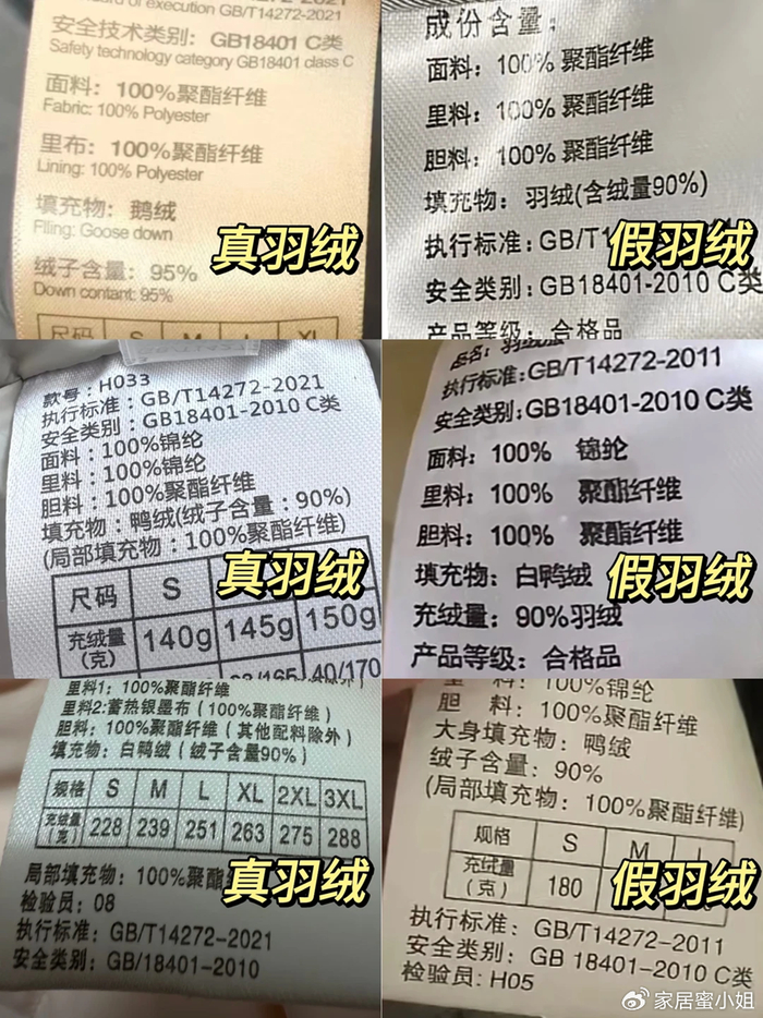 但提醒大家,市面上也存在着很多廉价的假羽绒服。