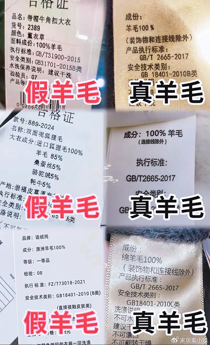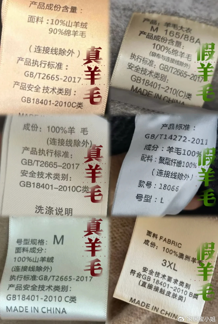 如果大家看到水洗标上面标注出的是100%澳洲羊毛或者是高支羊毛,这些都是“骗人的”。