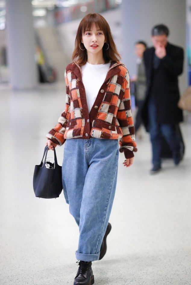在服装的搭配上,格纹开衫确实显出了不小的随性感,服装款式版型也都不那么的束缚,但又不过于宽松,就是恰到好处地体现了气质,搭配白色的T恤以及蓝色宽松牛仔裤,休闲范十足,穿搭还很温暖,所以吴昕真是越来越精致了,穿的服装简单却挺时髦,一点都不土。