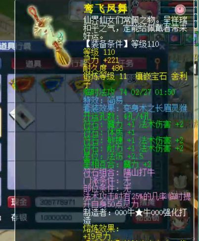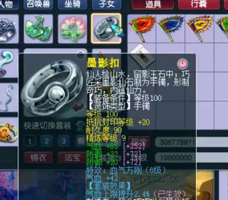 110级简易长眉灵猴项链,11锻舍利子,熔炼后灵力为240,初灵高达174,对于非专用项链来说,这项链的灵力也是非常高了。