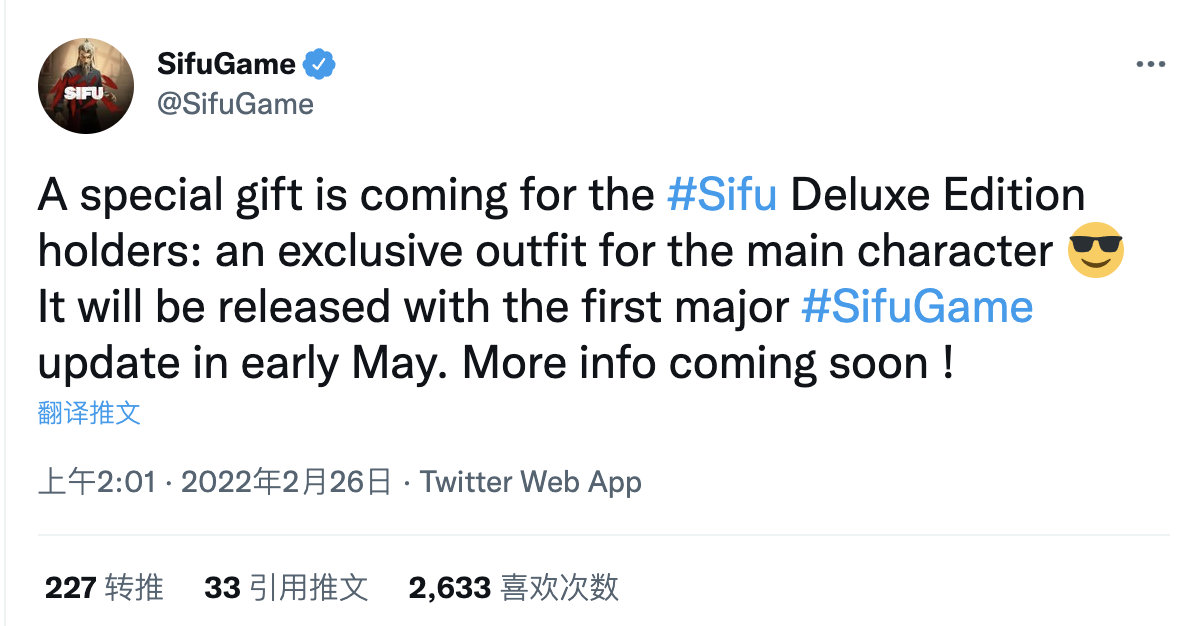 【#师父专属服装#】《师父》官方宣布:将会为购买了游戏豪华版的玩家们准备了一份特别的礼物,那就是主角的专属服装,该礼物将与5月初的首次重大更新中一起发布。